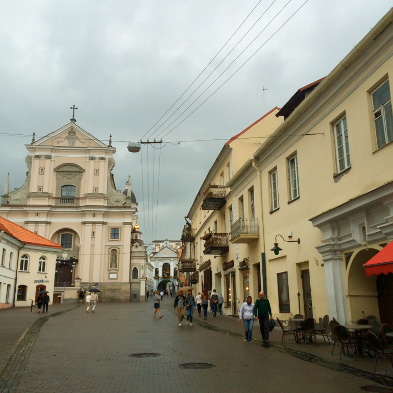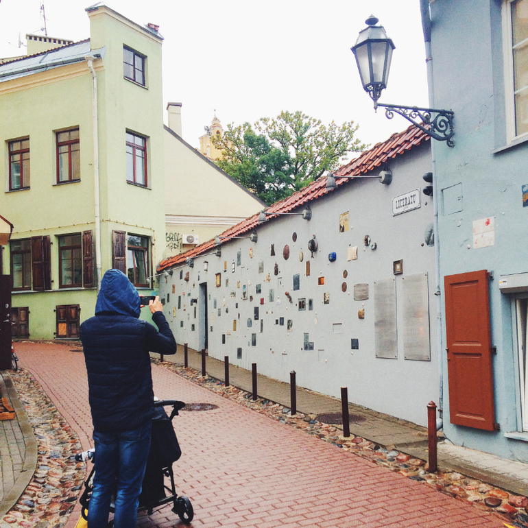 Это улица литераторов, очень интересно местечко. Жаль, но с погодой в Вильнюсе нам не повезло, шли дожди, и гулять в поисках достопримечательностей не хотелось.