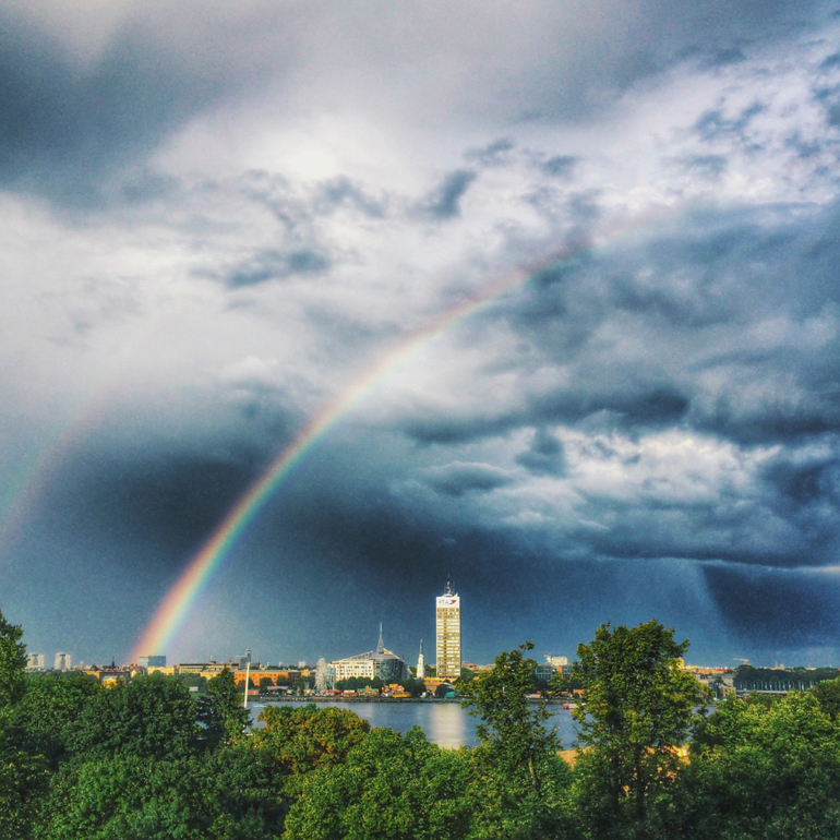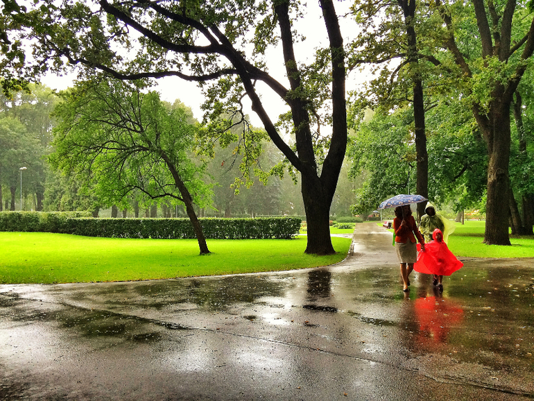 Рига- очень зеленый город, но погода в августе была совершенно непредсказуемая! При чистом утреннем небе к обеду легко мог пойти дождь, а мог и 4-5 раз в день) Так что местные жители, похоже не расстаются с зонтом) Мне очень понравились зеленые парки Риги, просторные, чистые и ухоженные. Прямо как в Москве)