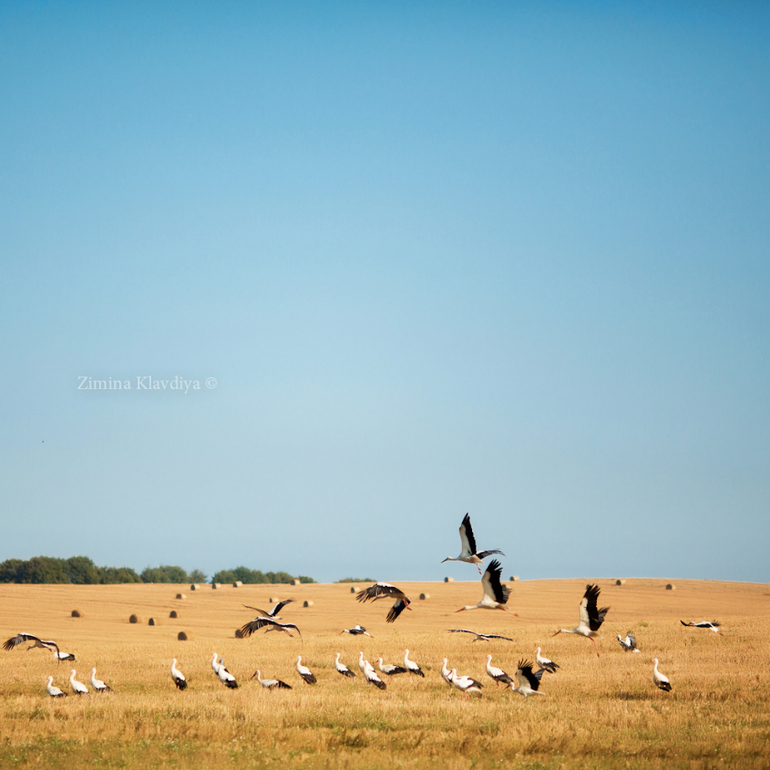 Бескрайние поля где-то между Литвой и Белоруссией. Стаи аистов) Никому не надо;)?