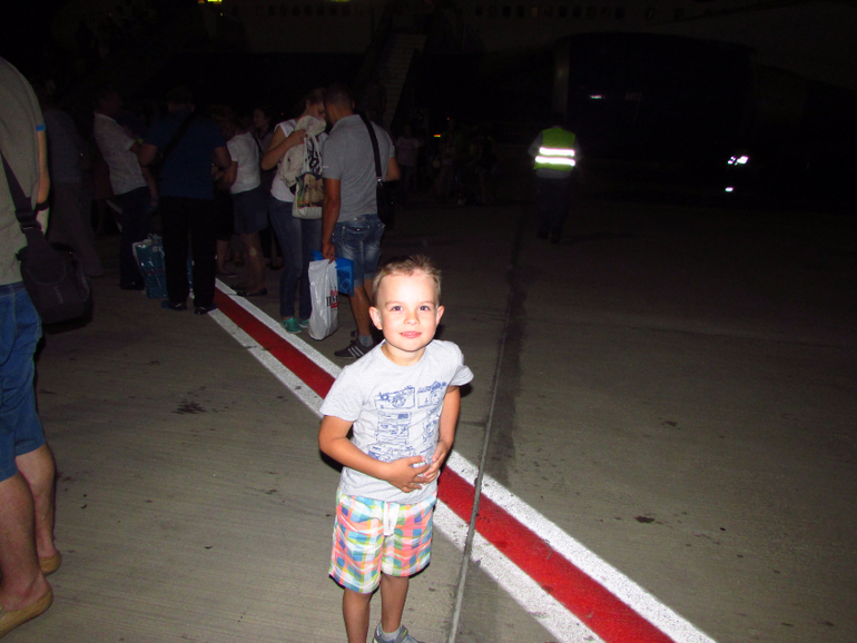 Летели с Трансаэро, рейсы не конкретезировали, вылет в Египет задержали на 5 часов, в Москву во время, мы с Никиткой были последние на регистрацию и мест рядом уже не было и нам дали в бизнессе, так что назад летели с большим комфортом)