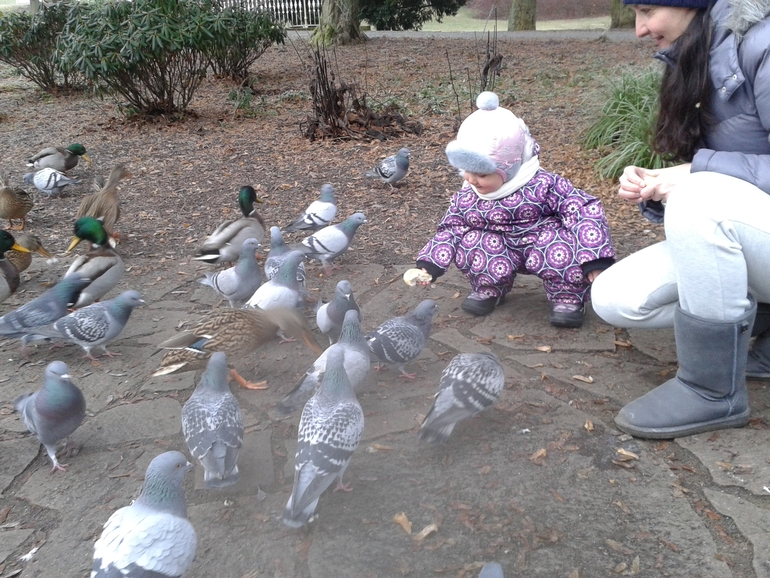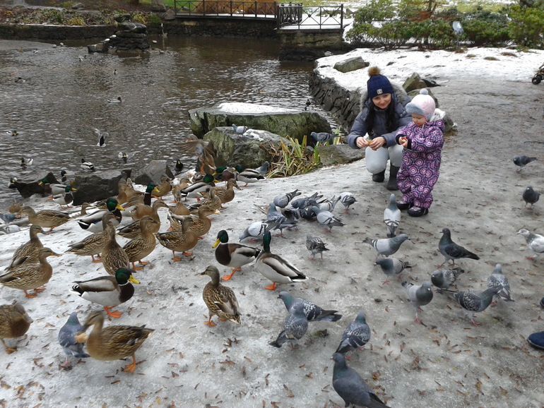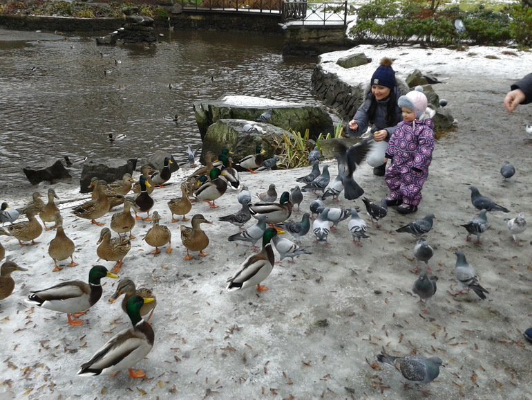 Каждый день ходили в парк кормить уточек и голубей