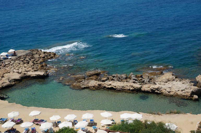 Отель в уединенном месте на берегу. Спуск по лестнице в море и природный бассейн.
