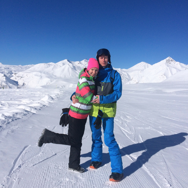 Добрались без приключений, по дороге затарились в супермаркете продуктами на неделю (в Гудаури нет больших магазинов и с продуктами трудно). Следующий день нас встретил синим небом и ярким солнцем и мы готовы были КАТАТЬСЯ). Дане взяли инструктора на час (50 лари), они поехали сразу на синюю трассу, а Ромку я сама катала на учебной трассе. Солнечное настроение, ослепительный белый снег, горы создают такое позитивное настроение, что если даже ничего не делать- уже хорошо) А в первый день мальчишки мои укатались так, что не стояли на ногах!