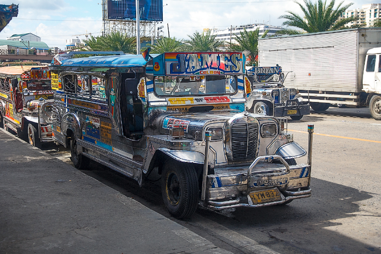 На островах местный транспорт назывался Джипни- это такие яркие разукрашенные автобусы. Они такие разные .