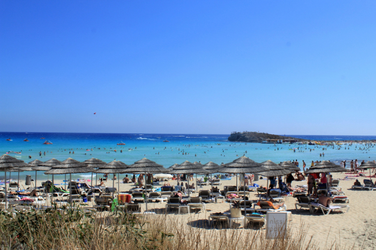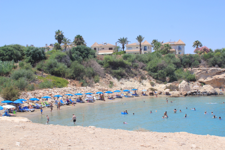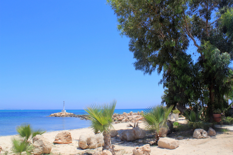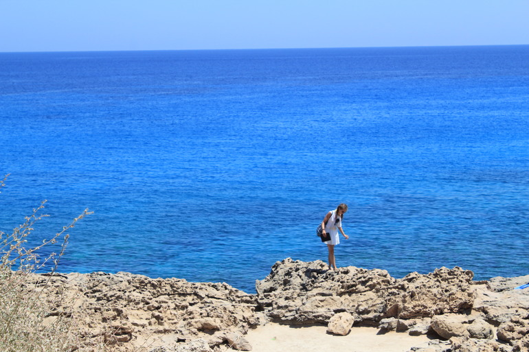 В этой части Кипра море и пляжи похожи на северный район Фамагусты - песочек, хороший вход и все прочее. Только все это сильно маленькое - бухточки, маленькие частные пляжики. Но куда бы вы ни свернули (по любому указателю на любой пляж) - везде есть парковки, везде все оборудовано, везде что-то свое интересненькое: то милый барчик, то площадка для игры в гольф прямо на пляже, то остров, куда легко доплыть даже детям, то храм прямо на берегу моря и т.п.