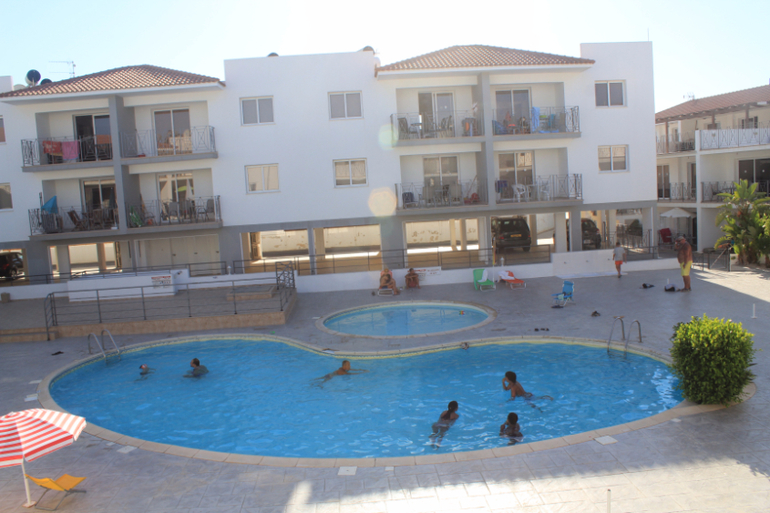 На греческой стороне в этот раз мы взяли размещение в районе Протараса (в прошлый раз были в районе Пафоса). Букировали через booking аппартаменты Varvara Gardens. Пусть вас не вводит в заблуждение название «сады», ибо этот комплекс настоящие каменные джунгли. Что очень поначалу обескуражило (особенно на контрасте с зеленым турецким краем).