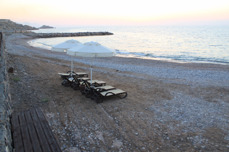 Ближайший пляж (выезжает из аппартов и налево в сторону Гирне) только начали оборудовать. Море бесконечно теплое и чистое, но вход.... сплошные скальные плиты...