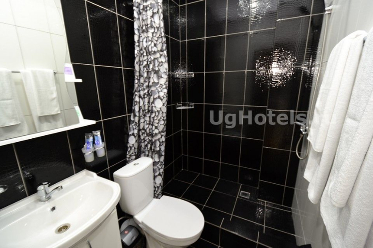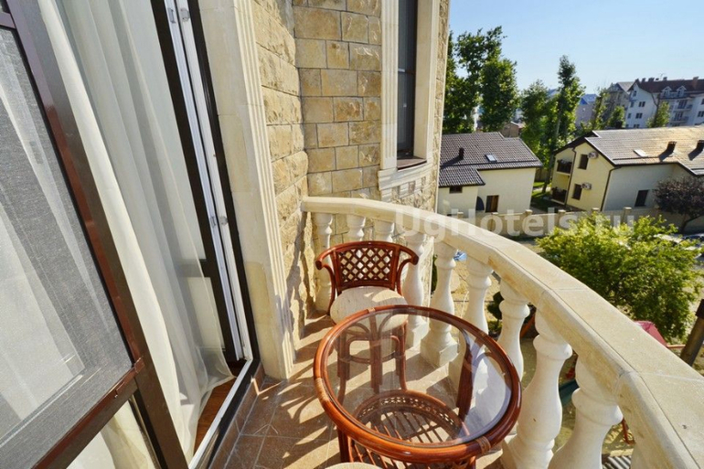 Фото один в один. Наш номер, балкон, ванная комната. Давали тапки, шампунь, мыло, гель для душа. Понравилось расположение дома, в стороне от дороги. Тихо.