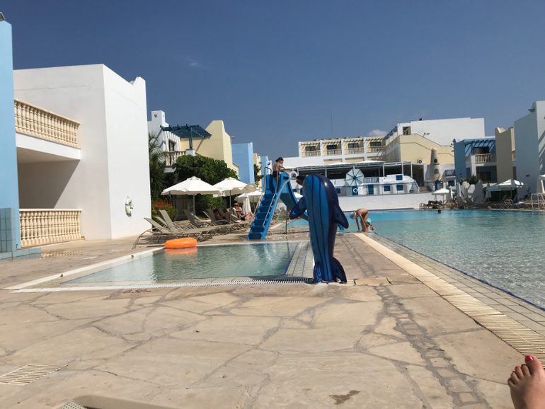Отель нам ОЧЕНЬ понравился, красивейший вид на море, корпуса и номера в отличном состоянии. Мой видео обзор отеля Бассейн всегда чистый, хлорируется в меру, очень понравилось что есть отдельный бассейн для детей, есть горка для детей в бассейне. Глубина в бассейне постепенно переходил на глубину. Есть второй бассейн для водного волейбола. Лежаков и шезлонгов достаточно, хватало всем. У бассейна сиди спасатель с аптечкой и спасательными кругами. Территория красивая, зеленая, все чисто и убрано, на территории отеля есть детская горка и детский клуб где проходят игры. В отеле всегда можно перекусить, попить и покушать мороженное! На ресепшене стоят весы они платные 1 евро. Если вы уезжаете на целый день на экскурсии заранее на ресепшене можете заказать ланч бокс в него входит бутерброд и фрукты. На ресепшене и практически весь персонал говорят на русском. Единственное что напрягало в отеле это во время еды на террасе у ресторана постоянно курили и этот запах сигар и сигарет очень раздражал, надо бы им как то разделить зону курящих и не курящих, просто бедные дети которые сидят кушают и на них дымят со всех сторон.