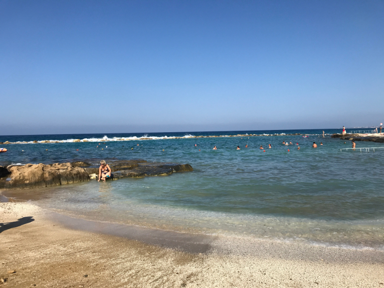 Кидаю видео обзор как идти до пляжа и видео обзор самого пляжа и моря . Море чистейшее, теплое, прозрачное! Пляж хороший, но заход в море плохое много камней, по которым сложно и больно идти, с горем пополам дойдешь до мостика и сам мостик деревянный и скользкий будьте аккуратны, за мостиком уже дно нормальное ровная плита и нет камней. Глубина на любой вкус. Для детей если не заходя далеко есть песок и дети с удовольствием играют и купаются. Пляж убирают каждое утро идти до пляжа от нашего отеля 3,5 минуты. Пляж чистый и нет запаха и стоячей воды как писали в отзыве, море и пляж отличный, только вот заход в море до мостика плохой! Ставлю 4 из за захода в море!