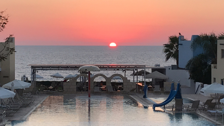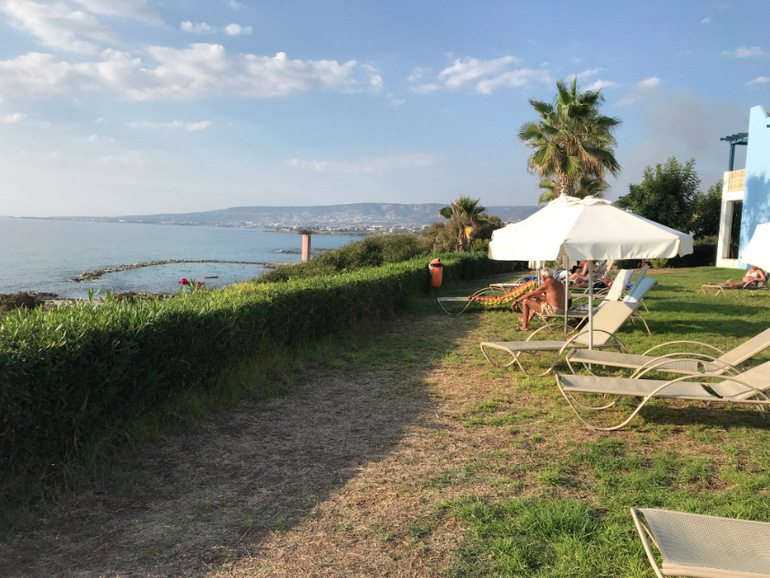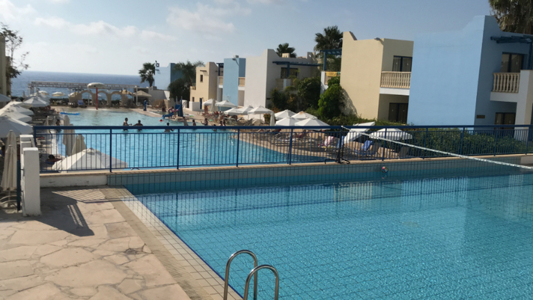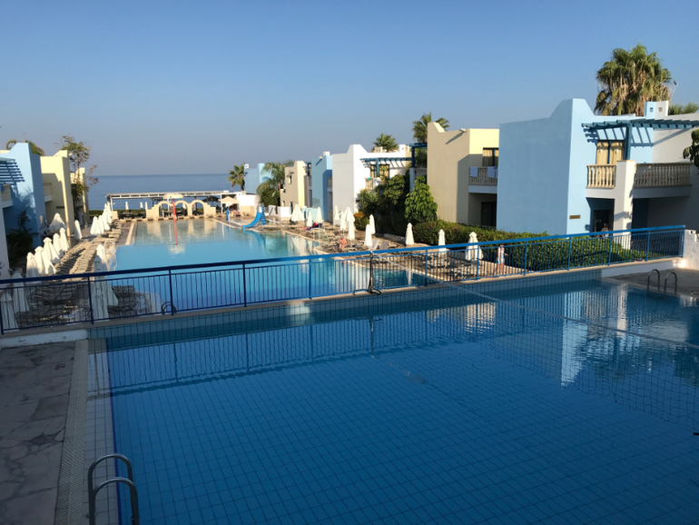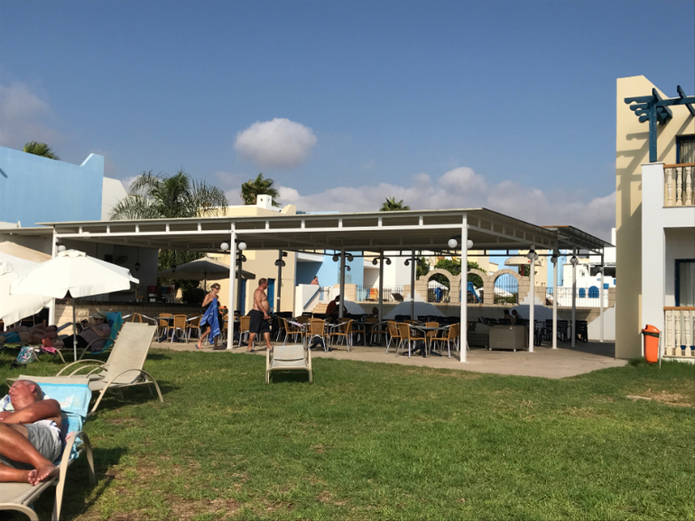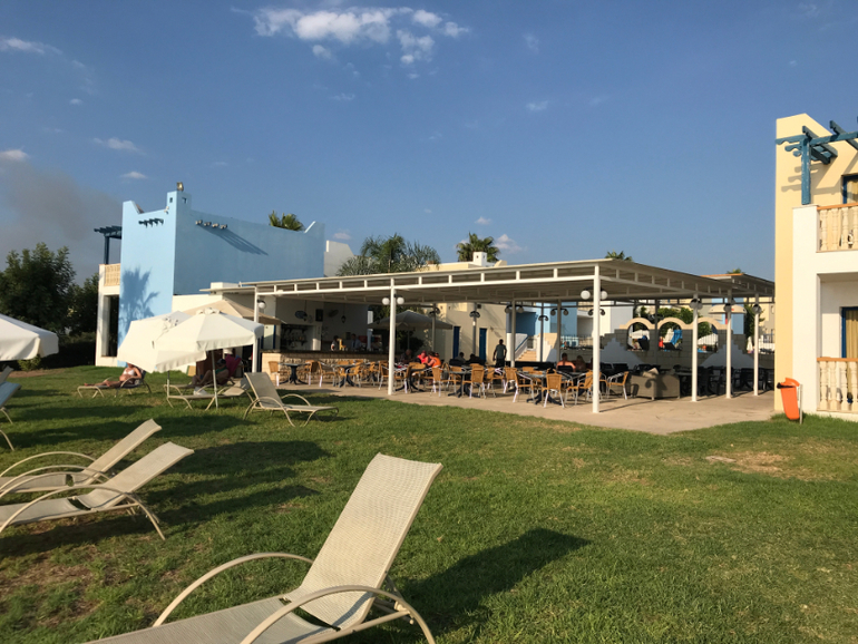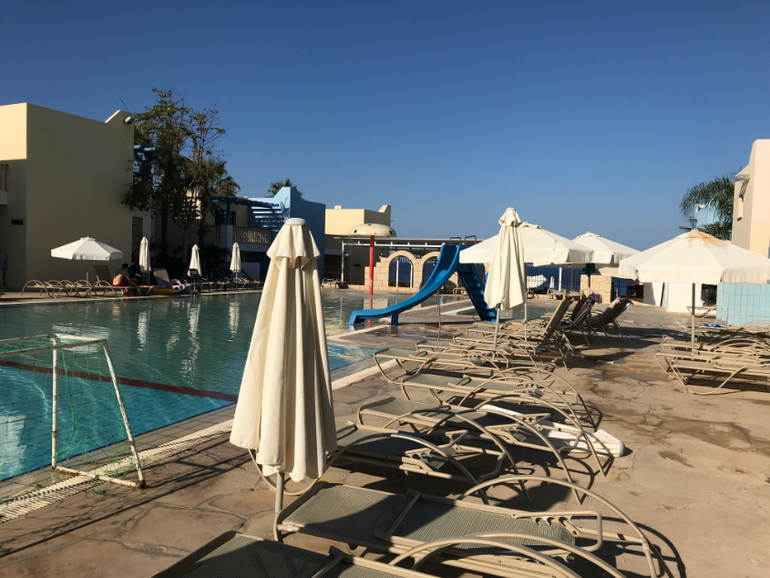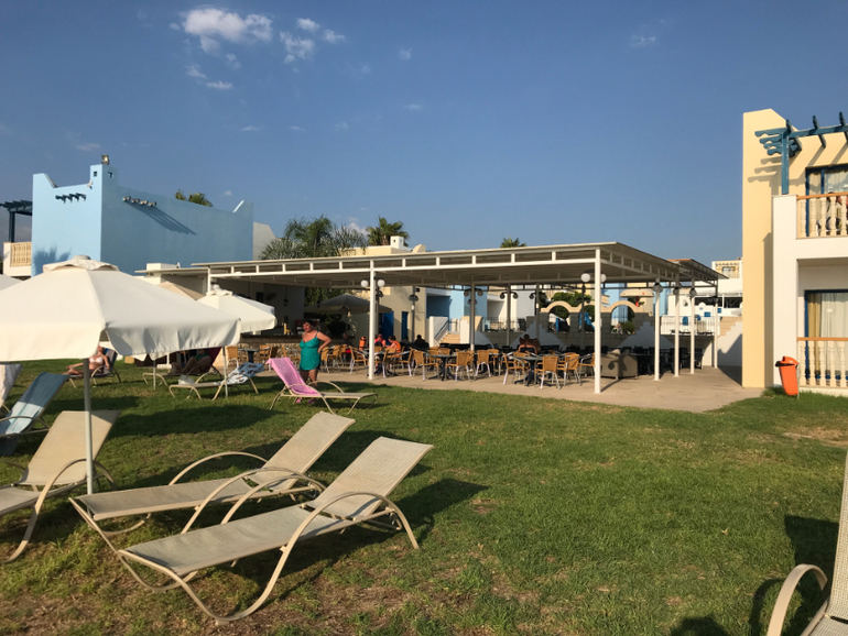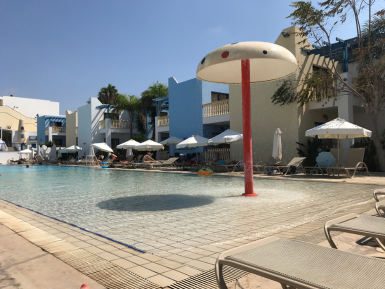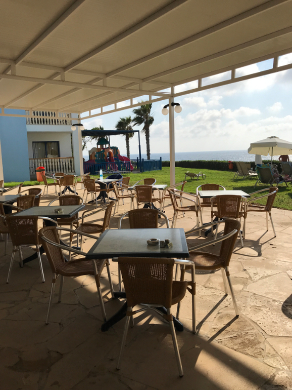 И так летали мы от TUI и уральскими авиалиниями, все шло по расписанию без задержек и проблем. Прилетели на Кипр в 8:45 получили багаж и на автобусе поехали до Пафоса в отель приехали в 11 часов. Когда мы увидели скромный внешний вид отеля, мы поняли что действительно отель очень скромный и нам не понравиться, но зайдя на территорию отеля настроение улучшилось и хотелось поскорее пойти на море! Конечно на завтрак мы опоздали и номер нам дали только в 14 часов, но мы уже не первый раз на Кипре и знаем что заселение после 14 часов и у нас были уже готовы вещи для переодевания и купания на море. На ресепшене нам сказали что мы можем покушать в пул баре, хотя там с 15 часов только еда для тех у кого все включено, но нас накормили в 12 часов там, огромное спасибо, так как детки были голодными после дороги и перелета.