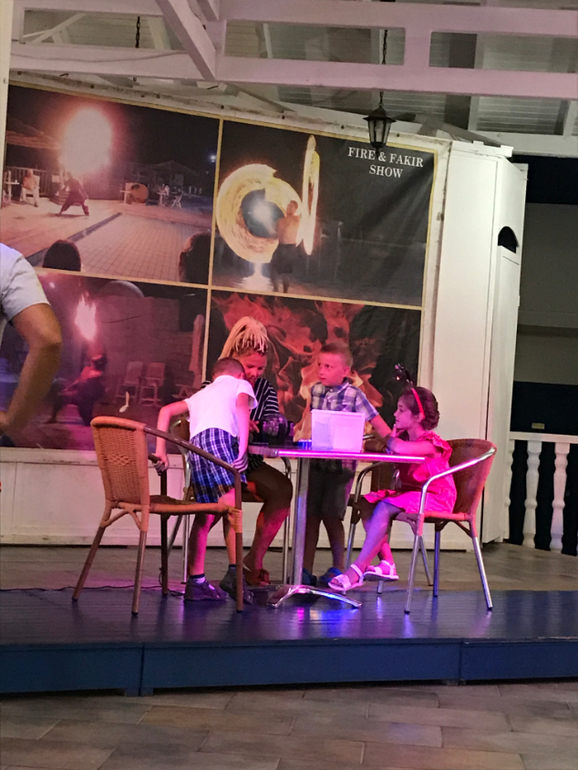 Отличные анимации каждый день новое, три девочки отлично проводят детские анимации днем с 10-12 часов рисуют, 15-17 часов играют или были пиратские вечеринки и прочее, дети очень довольны, детки поиграют и идут кушать с аниматорами мороженное и соки пить. Вечером аниматоры устраивают детям с 20:30-21 часу дискотеку, очень порадовали новые песни и движения для деток, а не замученные соку-бача))) Потом в 21:30 БИНГО и в 22 часа огненное шоу или греческие танцы или рок песни или караоке вечер, песни 80х и это все не просто музыка, это приезжают артисты и выступают в красивых костюмах и танцуют и поют в живую и ! Среда выходной день просто играет музыка. В дневное время аэробика, водное поло, дартц…. Одним словом есть чем заняться если вы сидите в отеле. Анимации ставлю 5! Девочки умнички, любят деток!