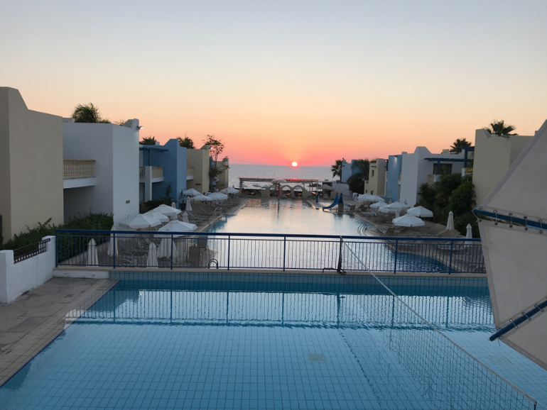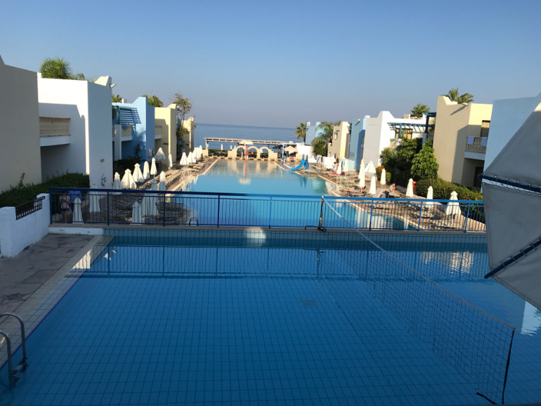 Отдыхали семьей 4 человека в отеле Eleni Holiday Village 4* с 11 по 23 сентября 2018 года. Отель нам очень понравился!! Начну с того что мы забронировали другой отель, но нам там отказали из-за не хватки мест в отеле и не было номеров для 4 человек, конечно же расстроились очень начали искать другой отель и постоянно нам высвечивался отель Eleni Holiday Village 4*, почитав про него отзывы поняли что отель на тройку и сюда ехать мы не хотели и в ютубе очень мало информации про это отель, но другие отели нам отказывали из за не хватки мест в отеле. В итоге отдыхать очень хотелось и мы забронировали отеле Eleni Holiday Village 4* они нам подтвердили путевку в течении 3 часов. Летели мы с настроем что мы в отеле не будем сидеть, будем на море и кататься по острову, были уверены и настроены из-за прочитанных отзывов что отель плохой!
