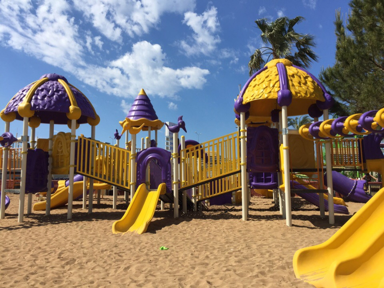 Еды много ,но она однообразная,на 4 день мы уже не хотели даже ходить в ресторан,ощущение было ,что все время мы жили в Макдональсе,что не доели утром было приготовлено в обед под другим соусом,о морепродуктах и клубнике с арбузом вообще речь не шла.Ресторан аля карт итальянский вообще не понравился.Что сказать по сервису,то официанты,столы не убирали толком,приборы роняли на пол и опять их же сервировали,курят по всему отелю,в барах очередь.Алкоголь так себе,махито не было.Мороженное очень вкусное давали.Понравилась мне территория отеля и сам отель очень красивый.Номер тоже нам понравился,был с видом на бассейн.Погода была разная,и жара и прохладная ,море прохладное было,бассейны тоже.,но искупаться мы успели.За территорией ничего нет,только пару магазинов.Один прям на выходе из отеля,очень хороший и цены не высокие.К концу отдыха уже так хотели домой ,что уезжали счастливые.Вход в море камушки,спец обувь желательна.Летели мы от Анек тур,наш гид был Али,очень не приятный мужчина,нам высказался ,что все кто приехал в мае ,все бедные какие то ,никто экскурсии у него не берет,очень не приятно было.На день рождение ,принесли тарелку фруктов,вино и открытку с цветочком,в амфитеатре из 3 именинников поздравили почему то 1.Детская площадка без навесов,очень в жару нагревалась.Контингент,семья с детьми и пенсионеры заграничные.Вывод таков,если вы едите впервые или компанией, то вам понравится однозначно,но если вам есть с чем сравнить,,то вы точно сюда не захотите вернуться.Мы точно не вернемся!не скажу ,что все так плохо,нормально,обычно,без восторга.