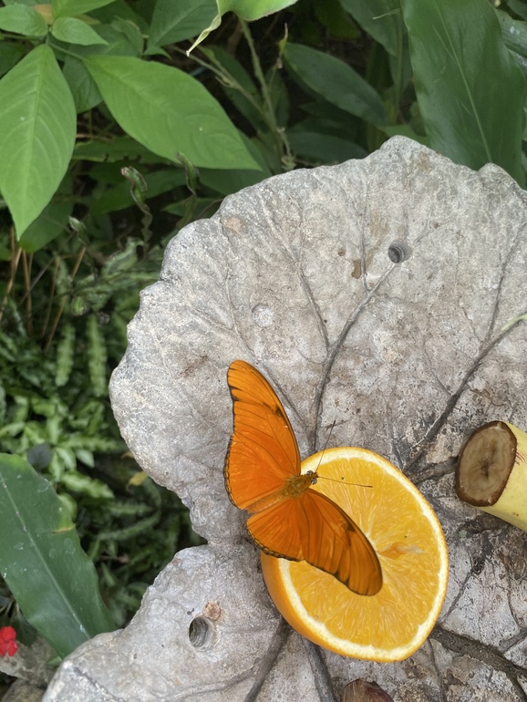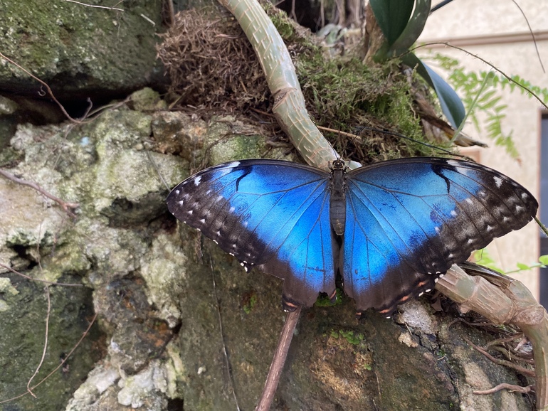 Кроме бабочек там живут и попугаи и некоторые маленькие рептилии. Везде в экзотическом павильоне разложены фрукты, чтобы бабочки могли покушать, а посетители - посмотреть на них вблизи.