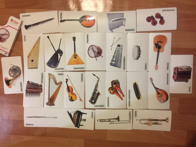 Слава уже месяц как занимается вокалом с педагогом в детском саду. Безумно нравится петь, выступает каждый вечер перед благодарной аудиторией в лице Гоши, папы и меня) Все больше разговоров о музыке, музыкальных инструментах и сцене)) Решила провести цикл занятий, посвященных музыке. Начали с любимых карточек «Мир на ладошке» тема «Мой маленький оркестр». Вспомнили знакомые инструменты, почитали про те, которые забыли, попробовали найти общие черты у разных инструментов.