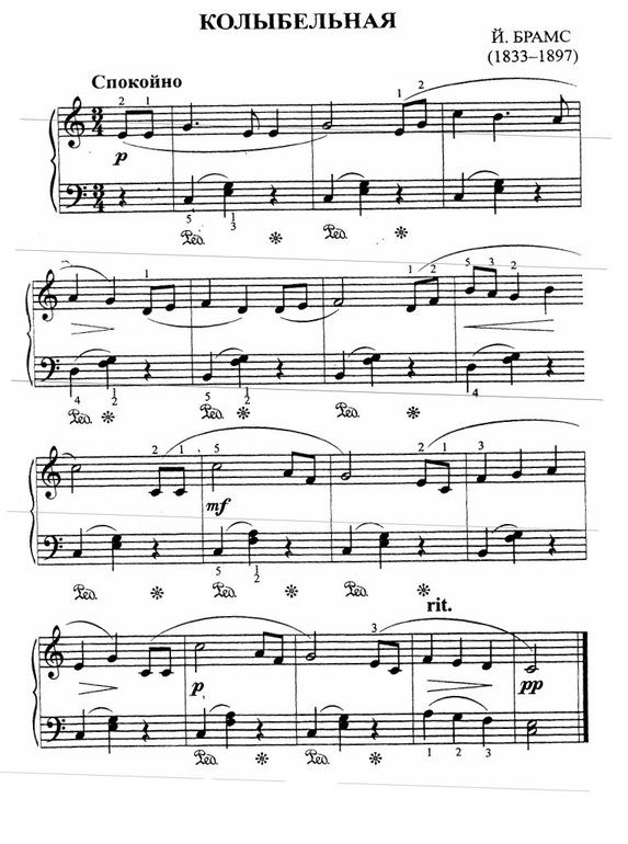 Здравствуйте. Очень хочу научиться играть колыбельную, под которую засыпает мой малыш. Колыбельная Брамса. Кто понимает в нотной грамоте переведите пожалуйста в ноты по типа до ре ми и т.д. Собираюсь играть на детском синтезаторе с тремя октавами , есть черные и белые клавиши. Желательно по простому. Образования музыкального в семье ни у кого нет.