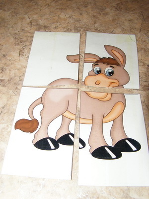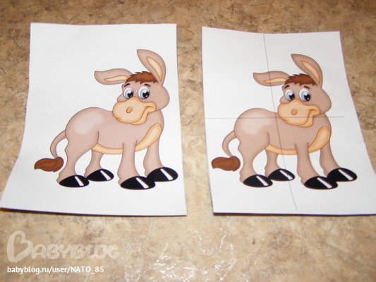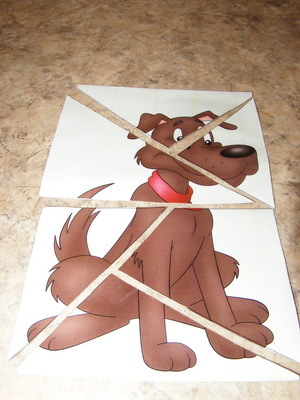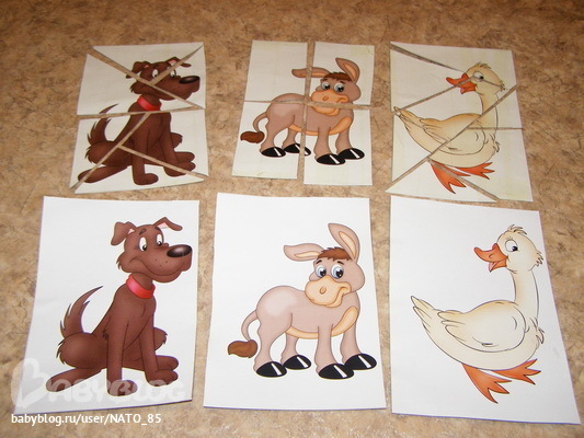 Самодельные игры, пособия. Хвастаемся!Вот сделала на пробу 3 картинки... Аналог пазлов и картинок-половинок.