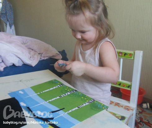 — взяли заготовку Березки из МПШ . На одной рисовали веточки и из пластилина делали листочки, на второй нарезали веточки и приклеивали их.