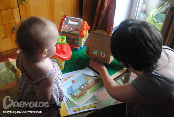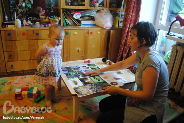 Подготовила плакаты с животными и их домиками, а так же использовали набор мягких кубиков: один кубик с животными, другой - с их местами обитания. Эти кубики я показываю Васене с рождения. И вот чудо - она, оказывается, уже отлично знает, кто где живет! Плакаты Васене тоже понравились, он активно участвовала в обсуждении, называла животных (вернее, то, как они говорят).