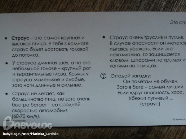 А потом нашли стих про страуса в азбуке Б. Заходера. Дочка до сих пор не доумевает, почему страусенок звал маму) Я ее спросила: а ты кого позвала, когда родилась? Маму! Вот и страусенок ее позвал))