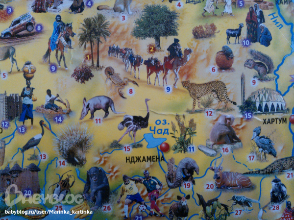 Тематические недели, дни и занятия от 0 до 3После гепарда мы перели к его соседы-рекордсмену - страусу. Вот он на нашей карте мира под номером 15: