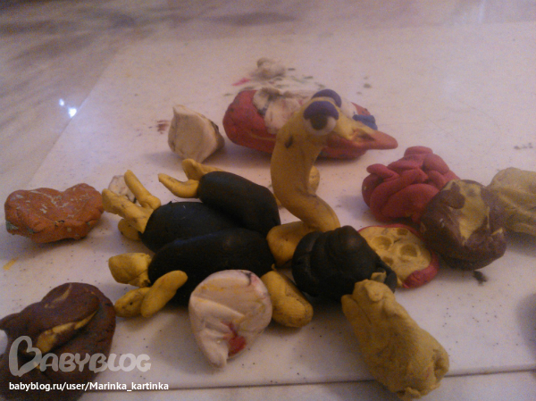 Вот наш вариант. Предложила дочурке сделать яйца для страуса кк на картинке, ей было лень и она просто обложила кускаим пластилина)))
