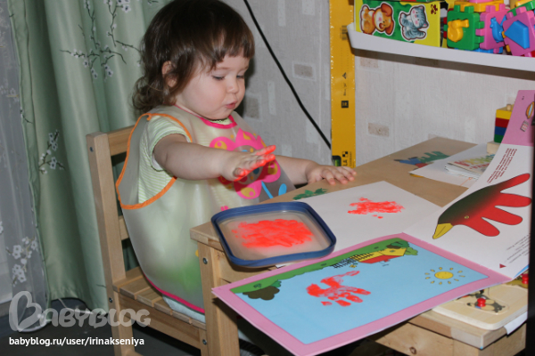 Рисовали пальчиковыми красками петушка