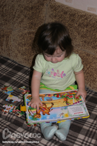 Собирали книжку-пазл с животными и читали не большие стишки про них, очень любим мы эти пазлы из. РООССА