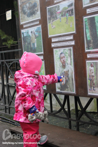 Потом пошли дальше, а там волки))Ксюшу очень заинтересовал стенд, где рассказывалось когда и где нашли волчат))