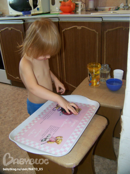 Игры с водой это у нас всегда в радость. Нужно с помощью подноса перенести воду в разных емкостях до кастрюли. Лиза прям очень старалась идти аккуратно. чтоб ничего не пролить и ей это удалось - потопа не произошло)))