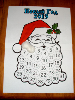 Она мне очень понравилась!!!Каждый календарный день мы приклеиваем ватку к бороде Деда