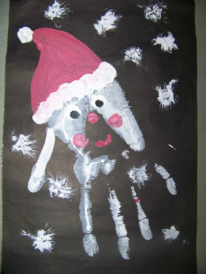 Из моей ладошки сделали Деда Мороза (мне оставаться чистой не позволили и дочурка очень рьяно измазывала маму краской)