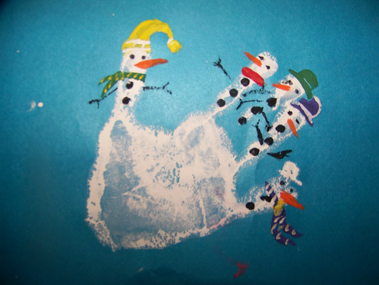 А это уже Лизина ладошка, а снеговиков папа с Лизой сделали)