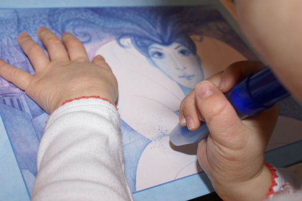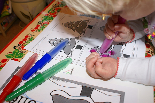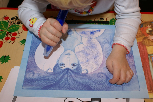 Хотели красками, но так как у нас есть фломастеры, то Саша только ими теперь орудует: