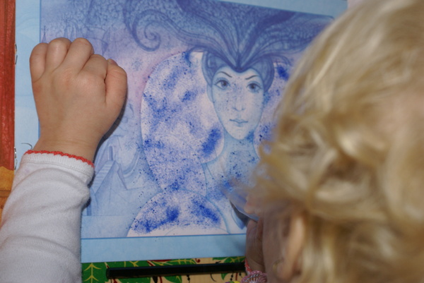 Наносим иней на наряд Снежной Королевы: