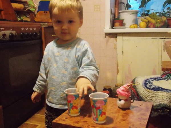 - поили снеговика водой, но только холодной ( из двух стаканчиков с холодной и горячей водой искали холодную)