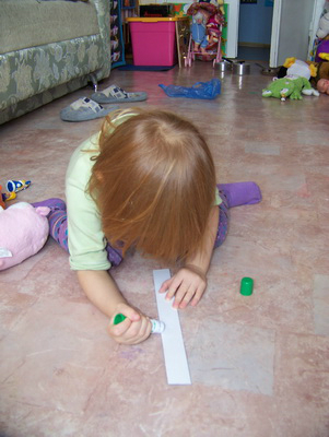 В моей папке с новогодними заданиями Лиза углядела силуэт снеговика и возжелала нарисовать ему личико и ножки.