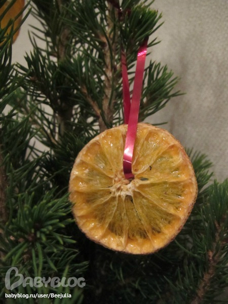 Я вот тоже насушила мандарин и апельсиновых долек для гирлянды, немного подгорели, но переделывать не стала. Скоро покажу)