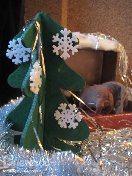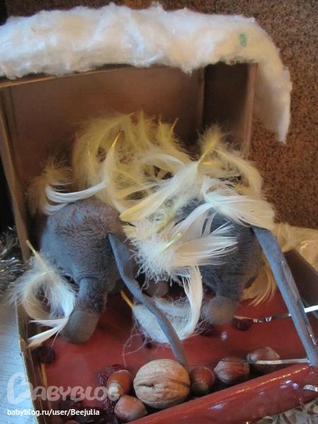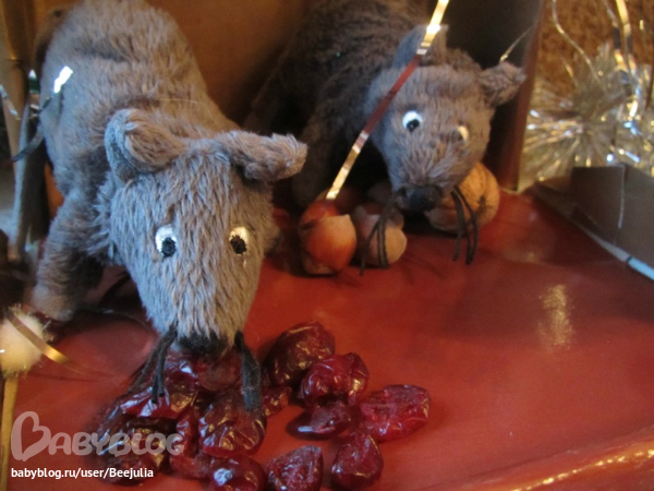 мышата проснулись и получили свои рождественские подарки: орехи и ягоды
