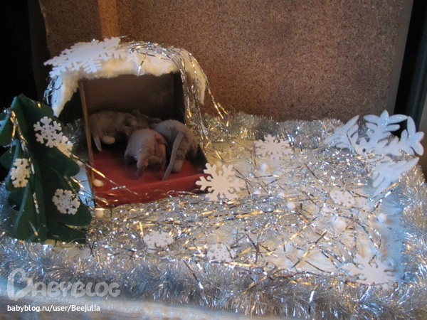 - домик для мышек: коробка из-под детской обуви, обклеенная картоном