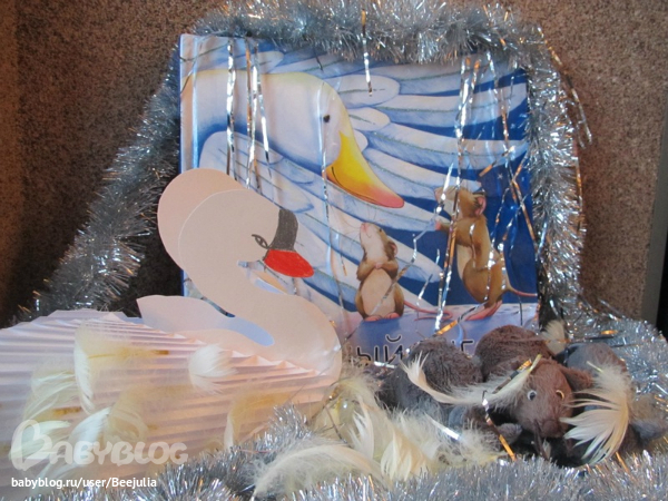 Но ведь вокруг снег и достать еду не возможно, кругом снег и мышата решили отдать лебедю свои подарки
