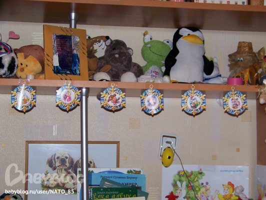 Ну и продолжаем украшать квартиру. Сегодня вот полочку украсили гирляндой. Я вырезала заготовки, а Лизик наклеила в серединку снежинки картинку и мы их приклеили на полочку)