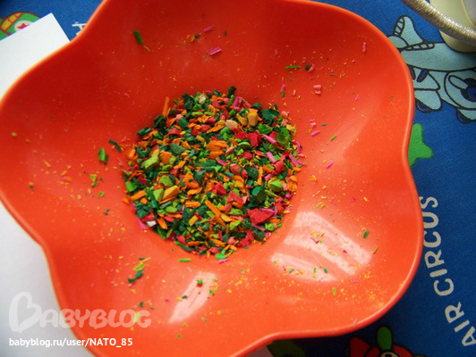 Ну и самое интересное - процесс превращения! Для этого нам понадобится стружка восковых мелков.