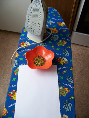 Утюг, бумага и мы еще бумагу через газету гладили, если вдруг что-то окажется за пределами не убежало далеко)