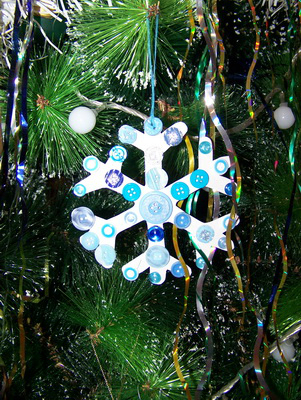 Еще у нас на елочке появилась замечательная снежинка.