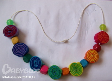 А еще моя маленькая кнопка получила наконец-то свои собственные бусы! Долго она у меня их просила, но мама все никак не могла определиться, что бы такого сделать, в итоге как всегда фетр)))