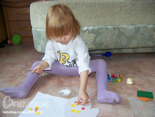 Многое в эти выходные делалось Лизой урывками, т.е. она сама просит определенное задание, начинает и бросает не доделанным (хотя это, на мой взгляд, а у нее, наверное уже законченная работа))).