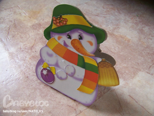 Еще один снеговик в нашей коллекции. Заготовки мои, исполнение Лизино)
