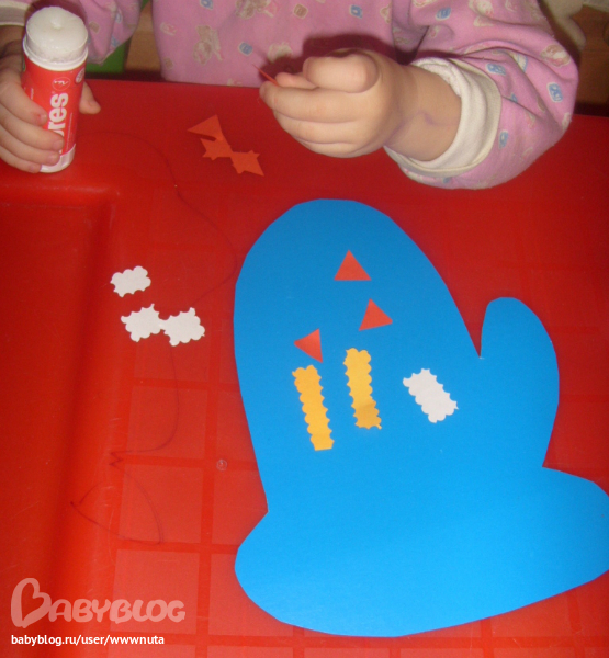 ПОтом Дед Мороз попросил ее украсить ему варежку: